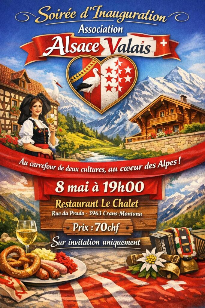 Soirée d'inauguration de l'association Alsace Valais le 8 mai 2026 à 19h au restaurant Le Chalet.