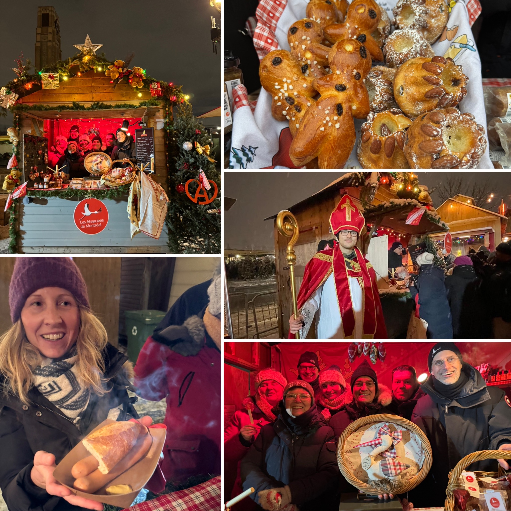 La présence du chalet alsacien au Village de Noël de Montréal, installé à côté du marché Atwater, est désormais devenue une belle tradition. Et cette année encore, la magie était au rendez-vous. Cerise sur le gâteau : la neige s’est invitée à la fête. De gros flocons lourds sont tombés, offrant un décor féerique et un réalisme digne des plus beaux Noëls alsaciens.