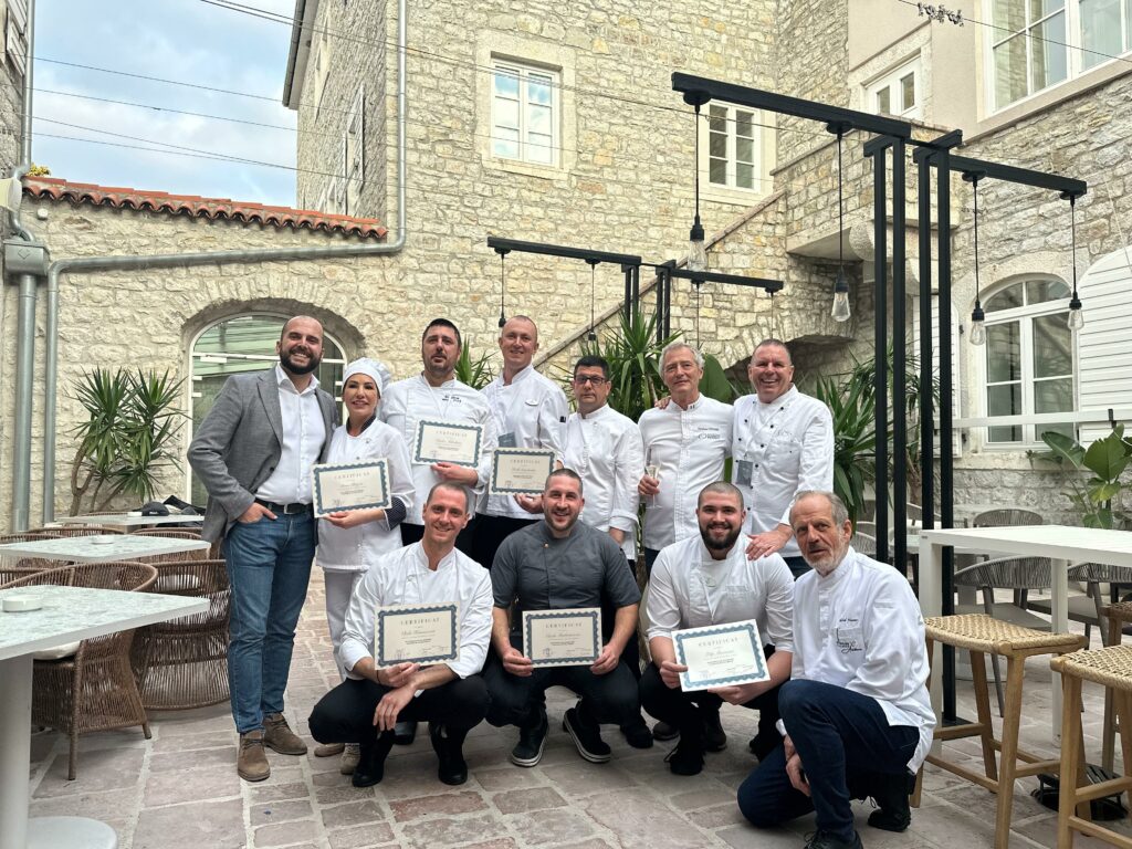 2)Immédiatement après cette première formation en Croatie, nous avons poursuivi le programme vers le sud, au Monténégro, dans la ville de Herceg Novi, où le programme MCEU a été organisé pour les chefs et professionnels de la région. La réalisation de ce programme a été soutenue par la Ville de Herceg Novi ainsi que par l’hôtel Lazure, dans lequel nous avions organisé en octobre dernier la manifestation « La cuisine française étoilée ».